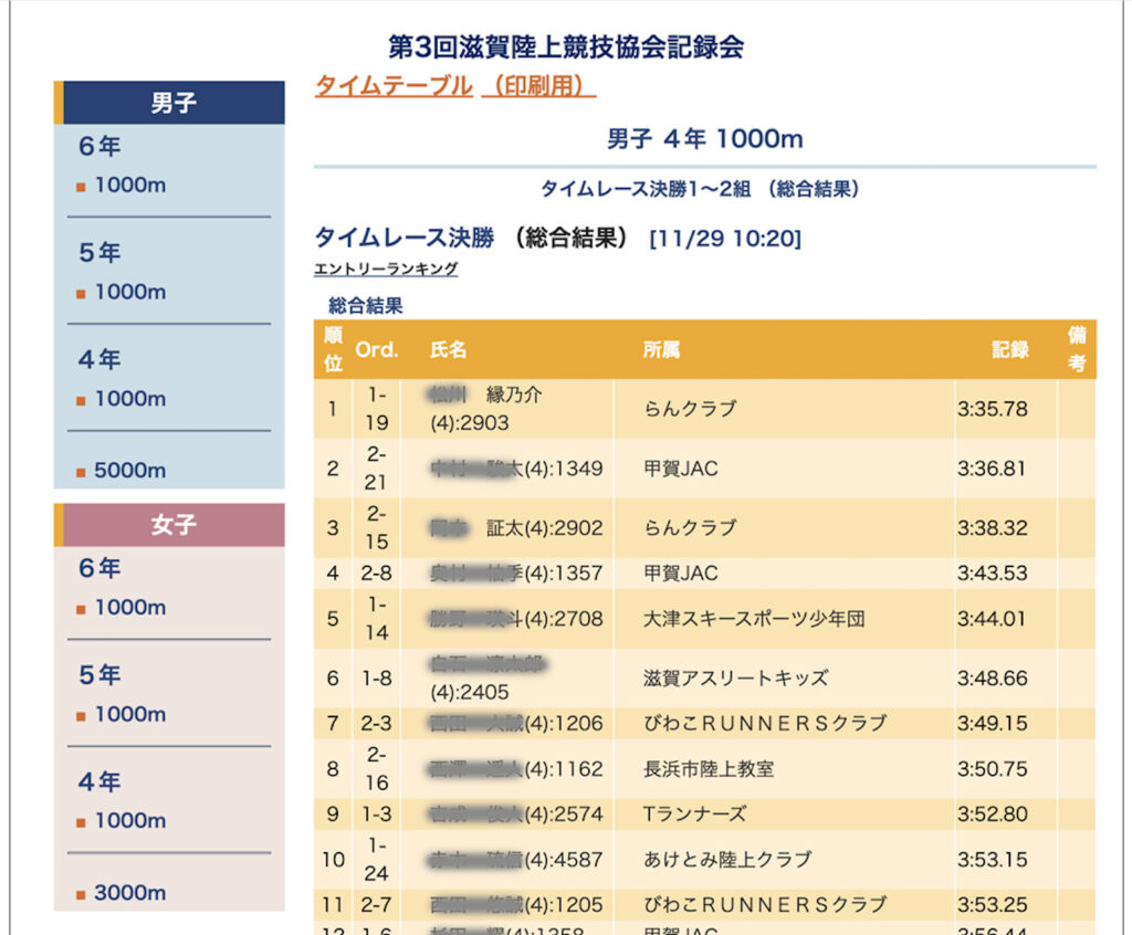 11月29日 滋賀陸協小学生1000m記録会